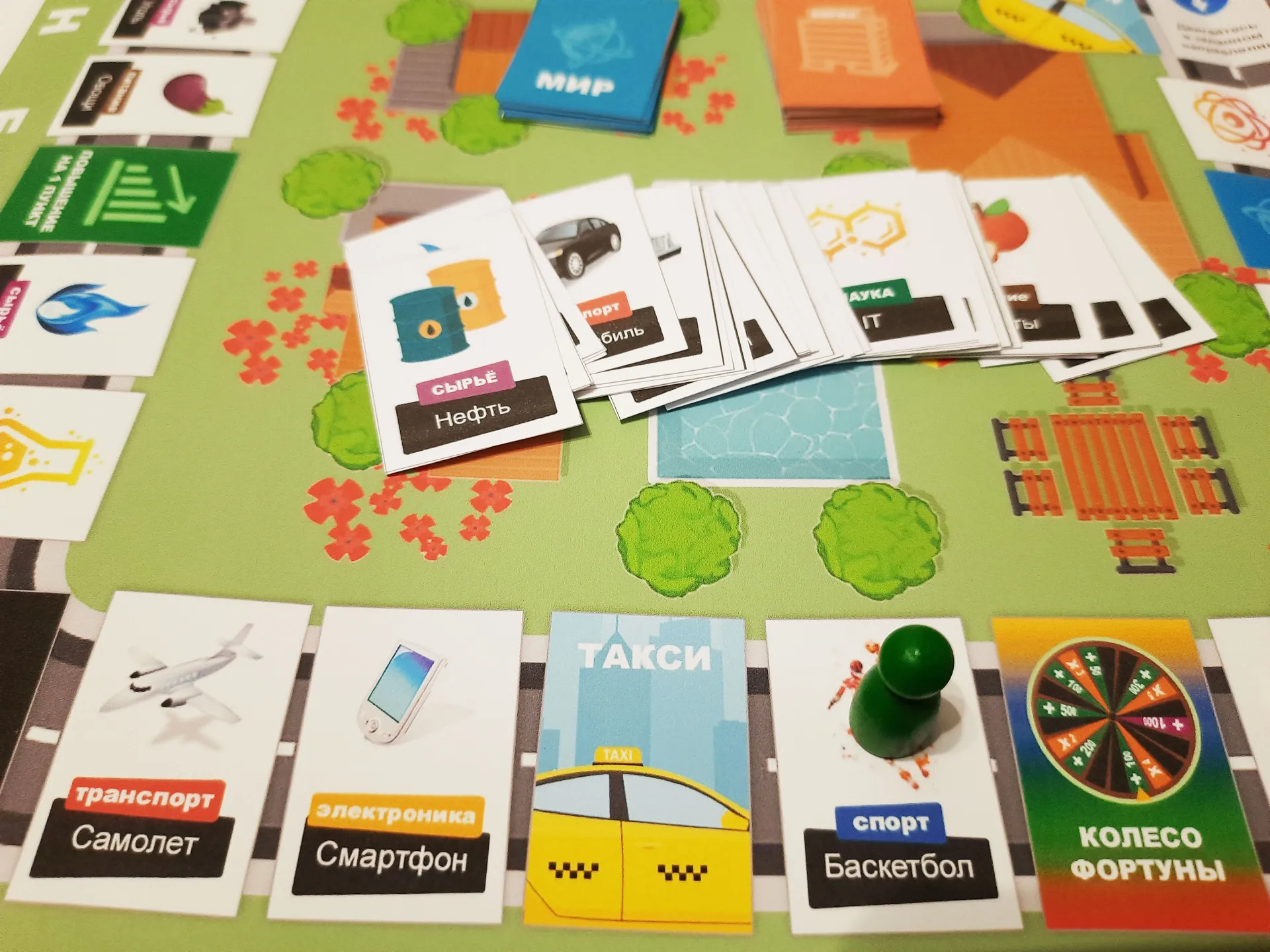 Ещё одно важное отличие от всех остальных игр в том, что здесь не все решает за Вас кубик. Допустим есть поле такси, с помощью которого, Вы можете перемещаться на любую клеточку поля, таким образом меняя свою судьбу в игре. Но и это ещё не все. В игре есть карточка, которая действует на всех игроков. Она описывает какое-то событие и все игроки должны его соблюдать. Это придает свою антуражность игре. Поиграв хоть один раз в эту игру Вам захочется играть снова и снова.